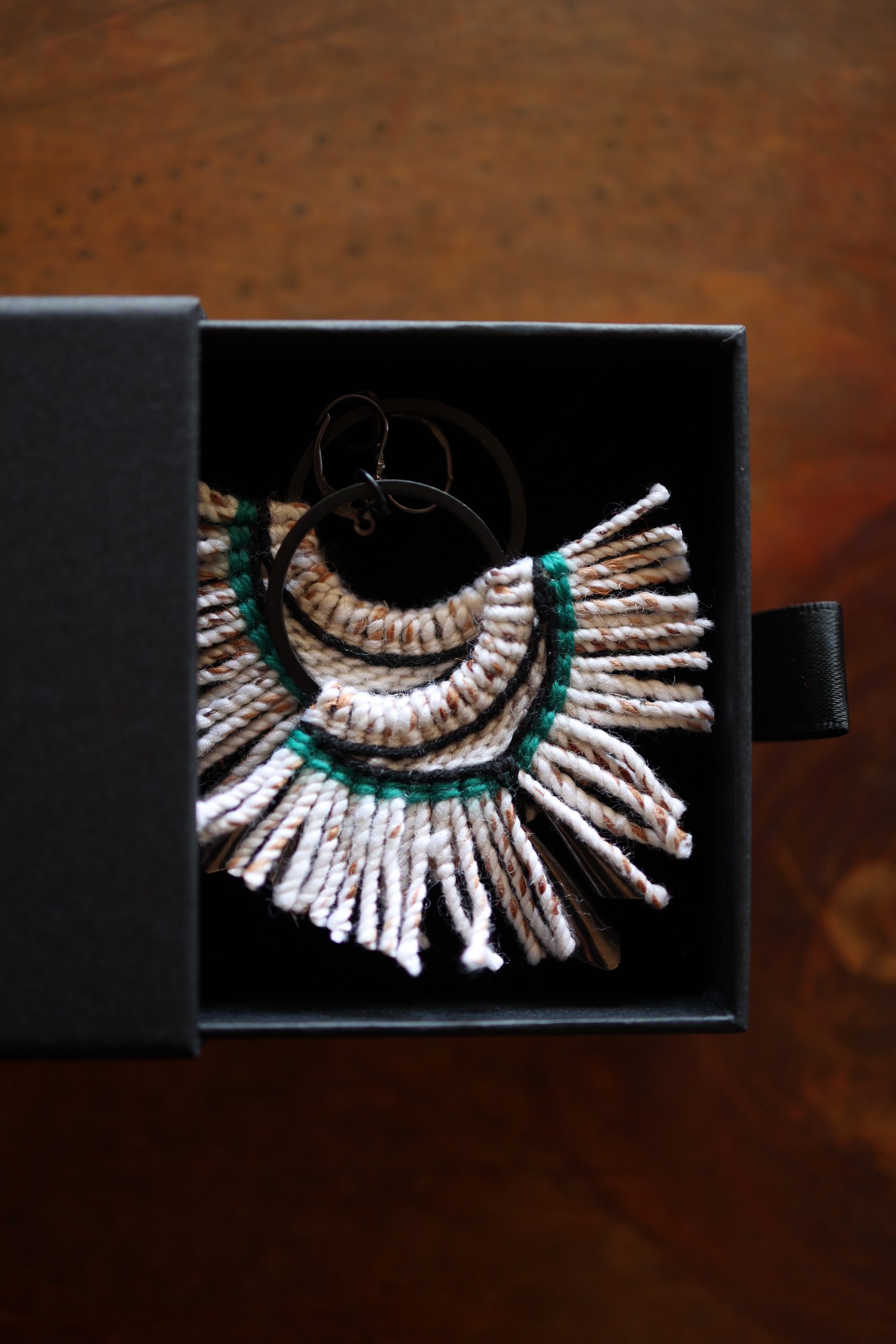 Twined to accompany ceremonial regalia or simply to offer an aura of regality, both indigenous and non-indigenous folk are welcome and encouraged to adorn themselves in Native-made ceremonial garb such as these earrings. These adornments are not just infused with bougie glamour but ancestral tradition and strength.