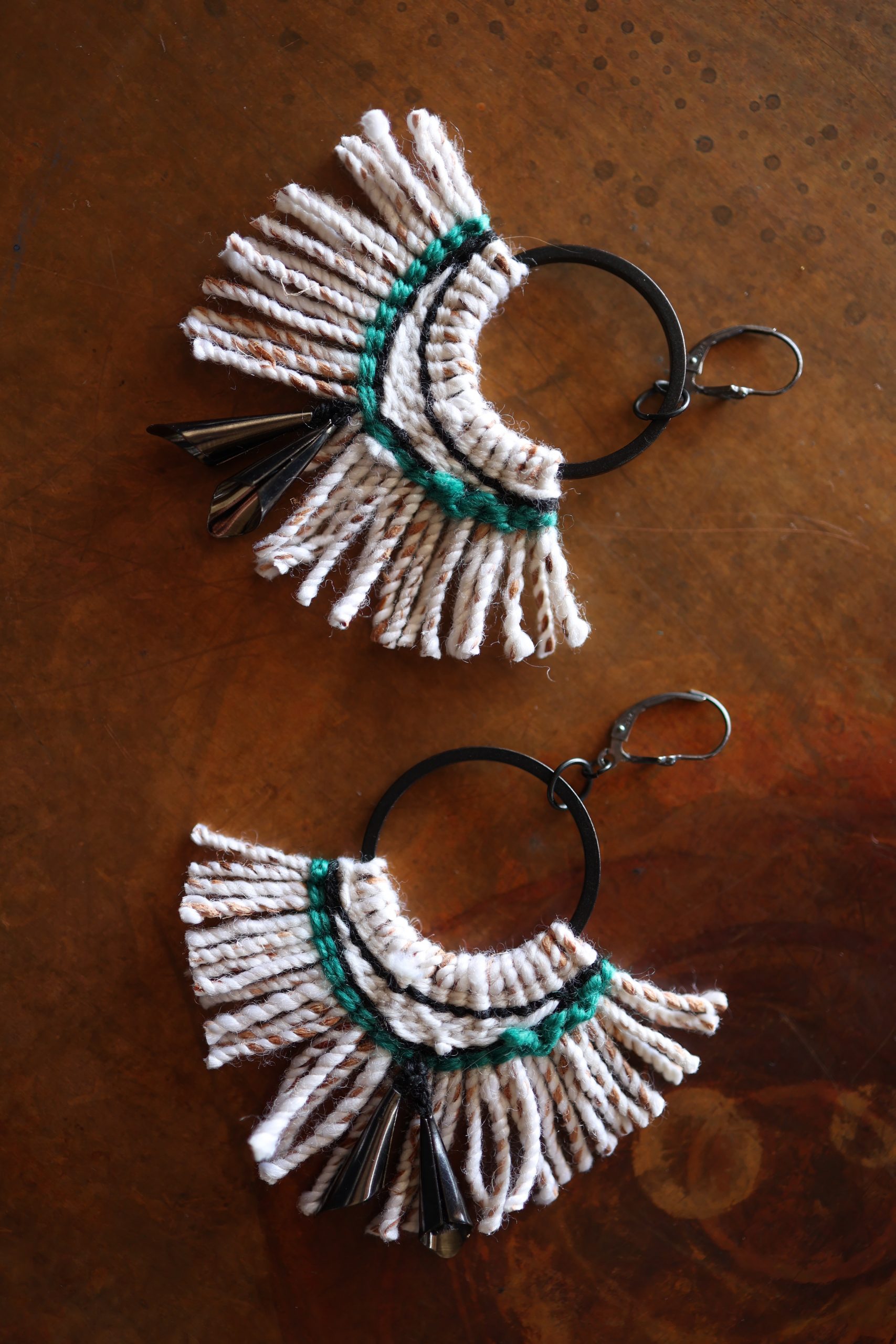 These earrings are woven following the Ravenstail tradition, and therefore have a front and back. The third photo shows the back.